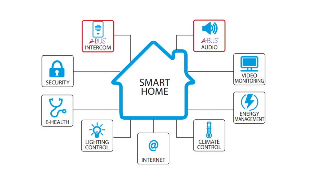 A-BUS is the ideal partner for providing audio and intercom solutions that complement other smart home technologies, such as security, lighting, LAN, WLAN, energy management, climate control, eHealth, video monitoring, and more — all based on inexpensive and reliable Cat5 cabling.